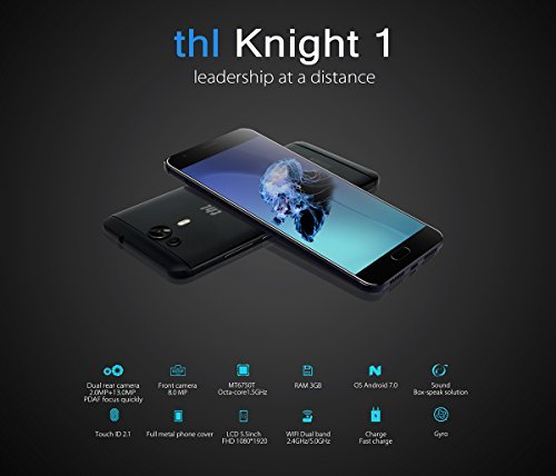 THL Knight 1 Smartphone, 5.5 Pollici FHD IPS Display Android 7.0 4G Telefono Cellulare, MT6750T Octa-Core 1.5GHz, 3GB RAM + 32GB ROM, 13.0MP Doppia Telecamera Posteriore / 8.0MP, Dual Sim 3100mAh Batteria WiFi Hotkont GPS OTG Cellulare -Nero