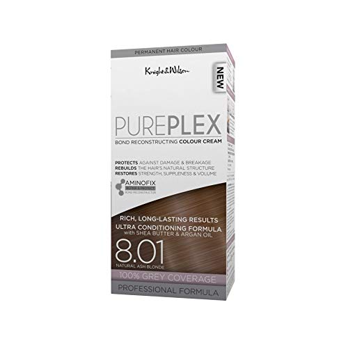 Knight & Wilson PurePlex - Tintura permanente per capelli biondo cenere naturale, proteggere, ripristinare e nutrire con Aminofix. 8.01 biondo cenere. Copertura 100% grigio.