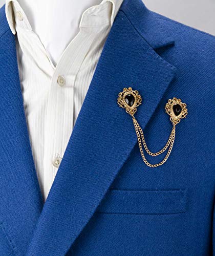 Knighthood Spilla Nera con Incisione a Catena in Pietra Nera e Oro Badge Badge Abito Abito da Cerimonia Regalo Camicia da Festa Collare Accessori Spilla per Uomo