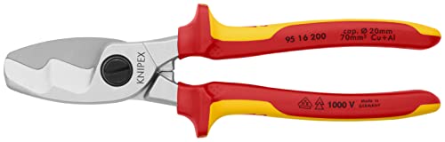 Knipex Cesoia per Cavi con Doppio Tagliente Cromata, Isolati con Manici Rivestiti in Materiale Bicomponente, Collaudati Vde 200 Mm (Confezione Self-Service/Blister) 95 16 200 Sb