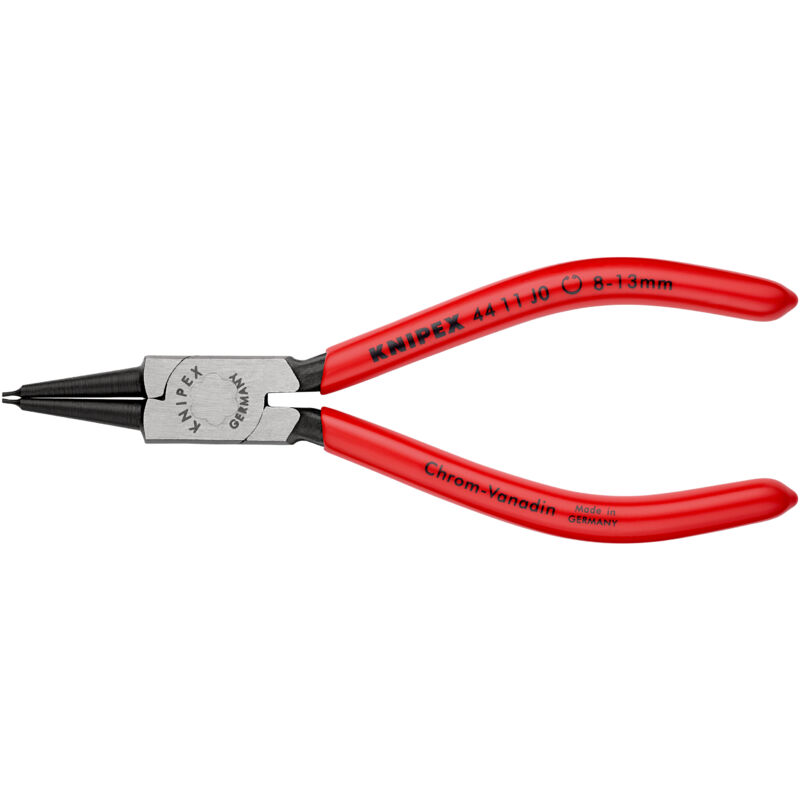 44 11 J0 SB Pinza per anelli di sicurezza Forma robusta, forgiata. Punte resistenti, antiscivolo. DIN 5256 C, punte diritte. confezione self-service/blister. Per fori: Ø 8 - 13 mm Punte (diametro): Ø 0,9 mm