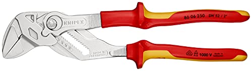 Knipex Pinza Chiave Pinza e Chiave in Un Unico Utensile Cromata, Isolati con Manici Rivestiti in Materiale Bicomponente, Collaudati Vde 250 Mm (Confezione Self-Service/Blister) 86 06 250 Sb