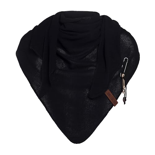 KNIT FACTORY - Sciarpa triangolare Lola - Sciarpa da donna finemente lavorata a maglia - Sciarpa di panno - per primavera ed estate - misto cotone, Nero, Taglia unica