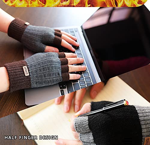 Knit Guanti Mezze Dita - Guanti Caldi Autunno Inverno Uomo Donna Plus Guanti Senza Dita all'Uncinetto in Velluto - Guanto di Lana Resistente al Freddo per Scrittura da Ufficio, Marrone