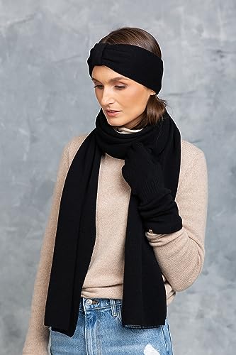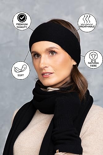 KNITAS fascia per capelli da donna a doppio strato in lana merino cashmere I fascia per capelli invernale lavorata a maglia scalda orecchie fascia larga da donna in nero - taglia unica