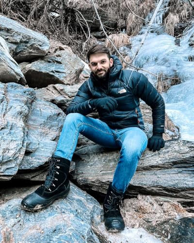 Knixmax Stivali da Neve Stivali Invernali Foderati in Pelliccia Suole Impermeabili Scarpe Calde Stringati Uomo Nero 42EU