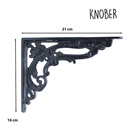 Knober - 2 supporti per mensole, in ferro pressofuso, colore: nero anticato