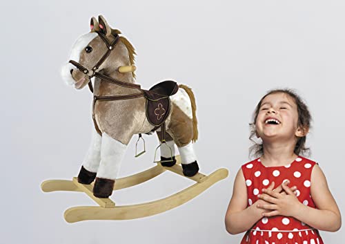 Su questo morbido e bellissimo cavallo a dondolo Levi di knorr toys si possono fare escursioni estese e avventurose.