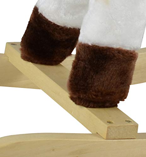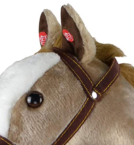 Il cavallo a dondolo ha due suoni diversi che possono essere attivati da un pulsante nell'orecchio: il cavallo risuona e riproduce un suono di galoppo.