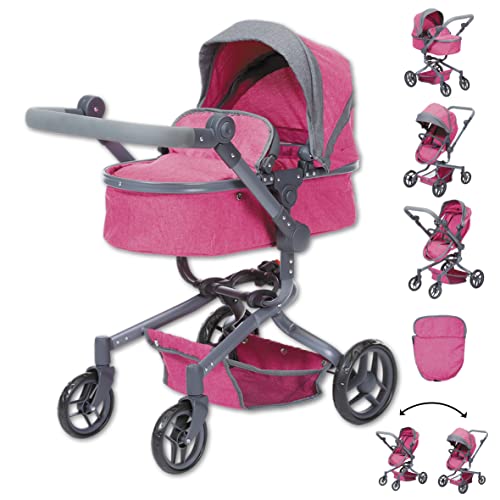 Passeggino per bambole combinato "Boonk" di Knorr Toys, moderno e pratico con tettuccio regolabile.