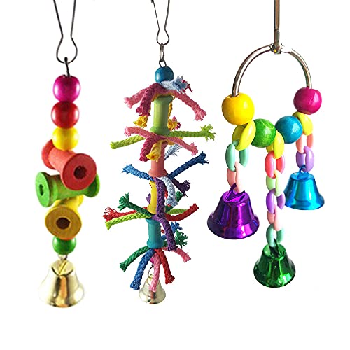 ✔ ASPETTO SQUISITO: il design colorato degli elementi, i colori brillanti e vivaci possono facilmente stimolare la curiosità, il divertimento e l'eccitazione degli uccelli. La campana attirerà il tuo uccellino a giocare e masticare. Può mantenere il tuo animale domestico di buon umore.