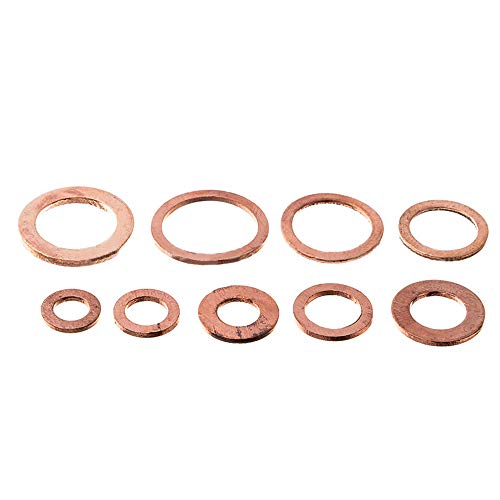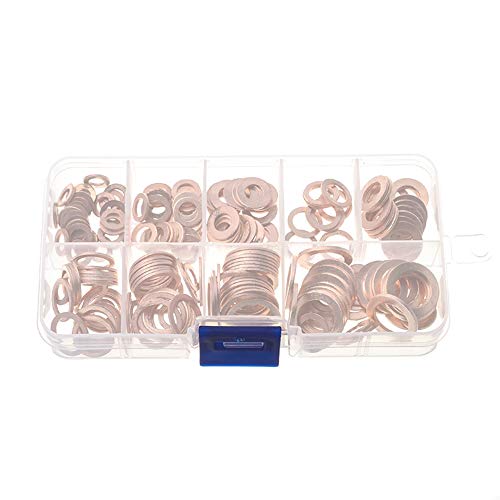 Knowing 200 Pezzi 9 Specifiche Rondella Rame Guarnizione Piatta,Guarnizione Piatta Tenuta, Guarnizione in Rame e Scatola di Plastica