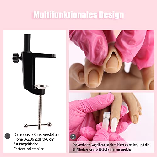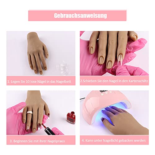 【Matériau respectueux de l'environnement】 Le modèle de pratique des ongles est fabriqué en silicon liquide de haute qualité, durable et respectueux de l'environnement, sans mauvaise odeur et non toxicque. Il peut être réutilisé pour l'acrylique, le gel. La fausse main peut être trempée dans l'acétone et également utilisée dans la lampe à ongles.