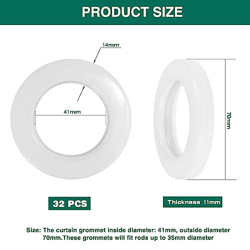 Knpwer 32 anelli per tende, occhielli in tessuto, rotondi, in plastica, diametro interno 40 mm, anelli fai da te per tenda da doccia (bianco)