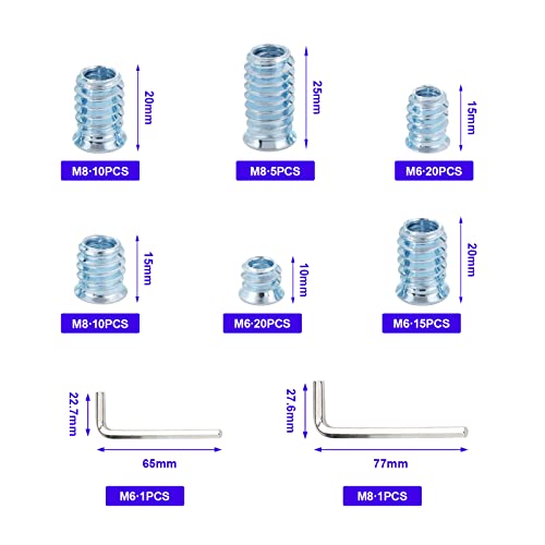 Knpwer 80 dadi filettati, inserti filettati in acciaio al carbonio, inserti M6 M8 con inserto esagonale per mobili in legno, con 2 chiavi esagonali