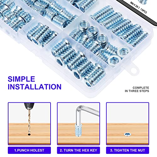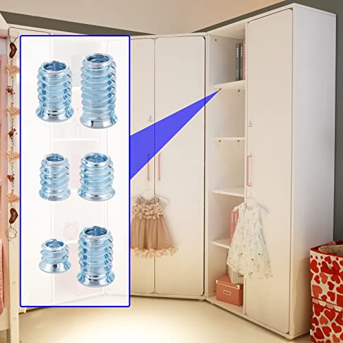 Materiale di qualità: gli inserti a vite per mobili sono realizzati in acciaio al carbonio di alta qualità, la superficie è zincata, robusta e durevole, alta durezza, buona resistenza alla corrosione, lunga durata e può essere facilmente avvitata.