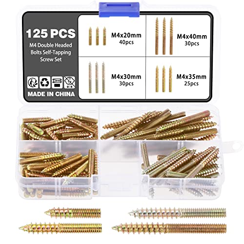 Knpwer 125 Pz M4 Vite Doppia Filettatura Bullone Lunghezza,Doppia Testa Autofilettante,Bullone filettato a doppia estremità, Doppio Estremità Legno Per Legno Mobili Fissaggio Tassello