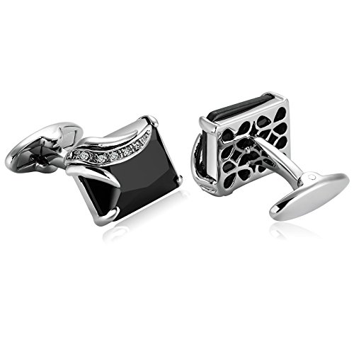 KnSam Gemelli Camicia Uomo Matrimonio Acciaio Inossidabile Rettangolo Gemelli Argento Nero 1.9X1.3Cm