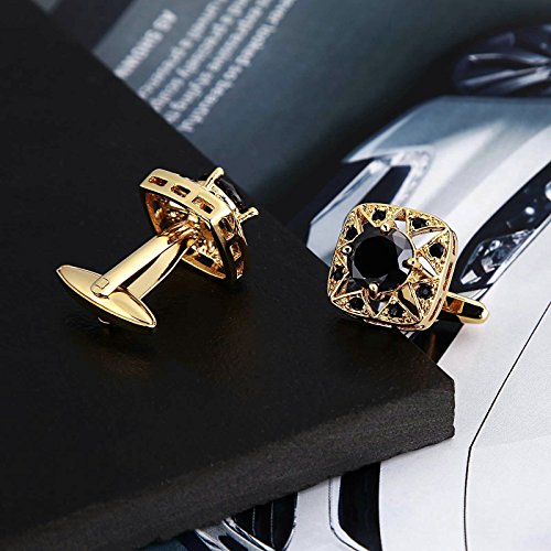 KnSam Gemelli da Polso Uomo Matrimonio Iniziali Acciaio Inossidabile Cubic Zirconia Quadrato Gemelli Oro Nero 1.5X1.5Cm