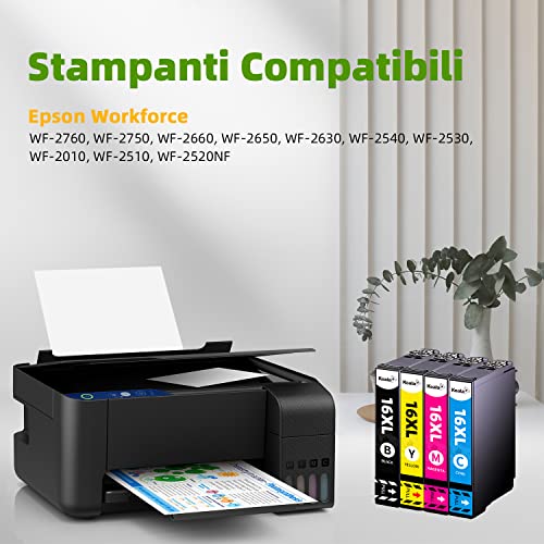 Volume: 18ML per Nero e 15ML per Ciano/Magenta/Giallo. Resa Pagina: 600 pagine per la cartuccia 16XL Nero, 440 pagine per la cartucce 16XL Ciano/Magenta/Giallo. (Alta Capacità, Copertura del 5% di A4)