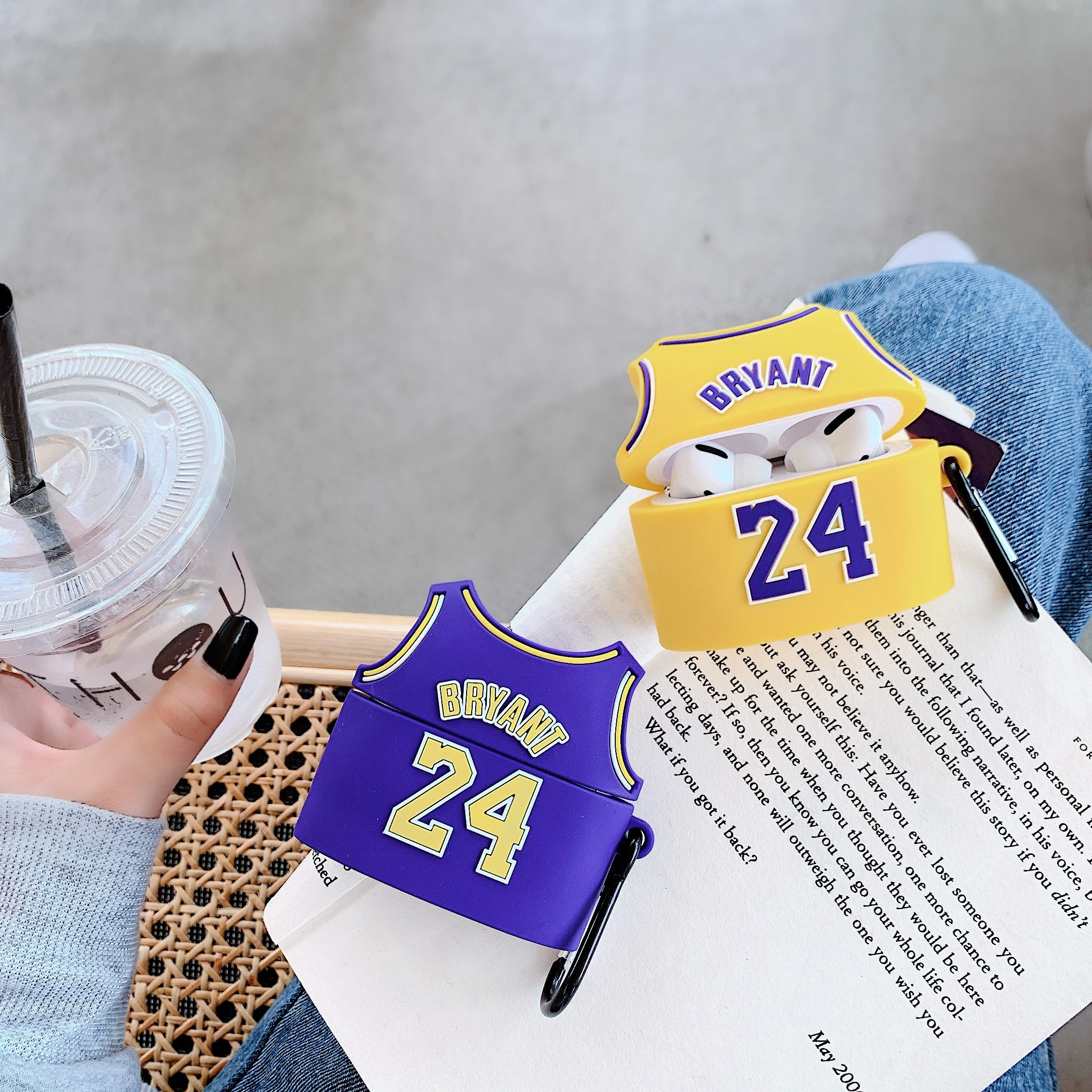 3D Kobe Bryant No. 24 Basketball Jersey Protection Cover Soft Shockproof Silicone Wireless Bluetooth For Airpods 1/2 pro Case