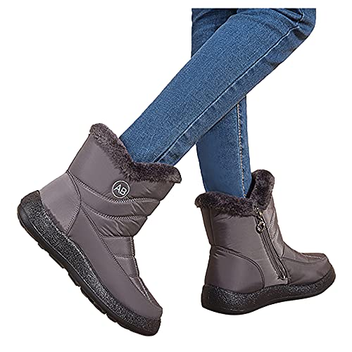 Kobilee Stivaletti da neve da donna, impermeabili, foderati, caldi, eleganti, piatti, per attività all'aria aperta, da neve, stivali da neve, grigio, 38 EU