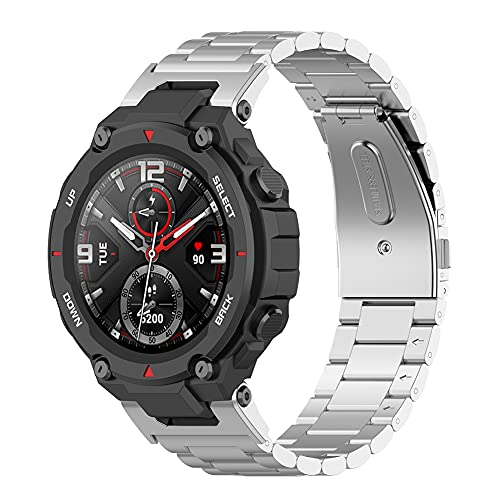 Kobmand Cinturino Compatibile Amazfit T-Rex Pro,Bracciale di Ricambio in Acciaio Inossidabile per Amazfit T-Rex A1918/T-Rex Pro (argent)