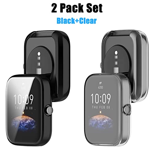 Kobmand 2 pezzi Custodia compatibile con Amazfit Bip3, TPU copertura completa Custodia protettiva Cover Cover protettiva per Amazfit Bip3 (black+clear)
