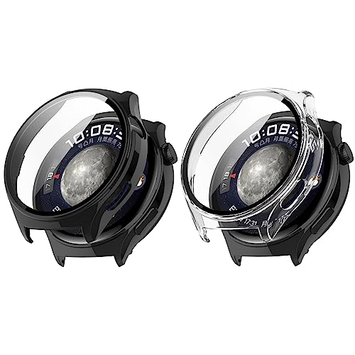 Kobmand 2 Piece Case Compatibile con Huawei Watch 4, Copertura completa della pellicola protettiva Custodia protettiva per Huawei Watch 4 (black+clear)
