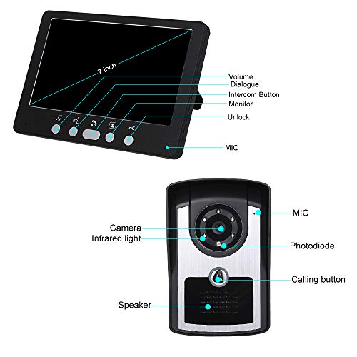 KOCAN Monitor da 7 Pollici Videocamera HD Videocitofono Campanello Citofono Videocamera per Campanello con Visione Notturna IR