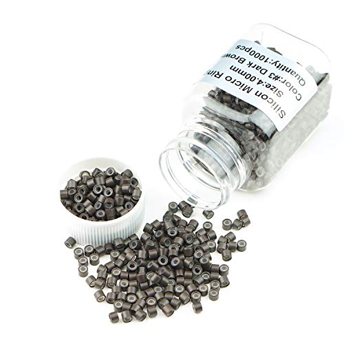 KOCONI Micro anelli in silicone foderati in silicone da 4,0 mm, micro perline in silicone per extension per capelli da 0,5 g, 4,0 mm, 3 marrone scuro)