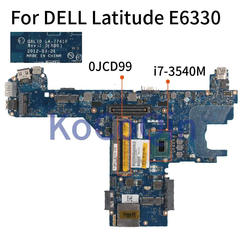 KoCoQin Laptop motherboard For DELL Latitude E6330 i7-3540M Mainboard CN-0JCD99 0JCD99 LA-7741P SR0X8 DDR3