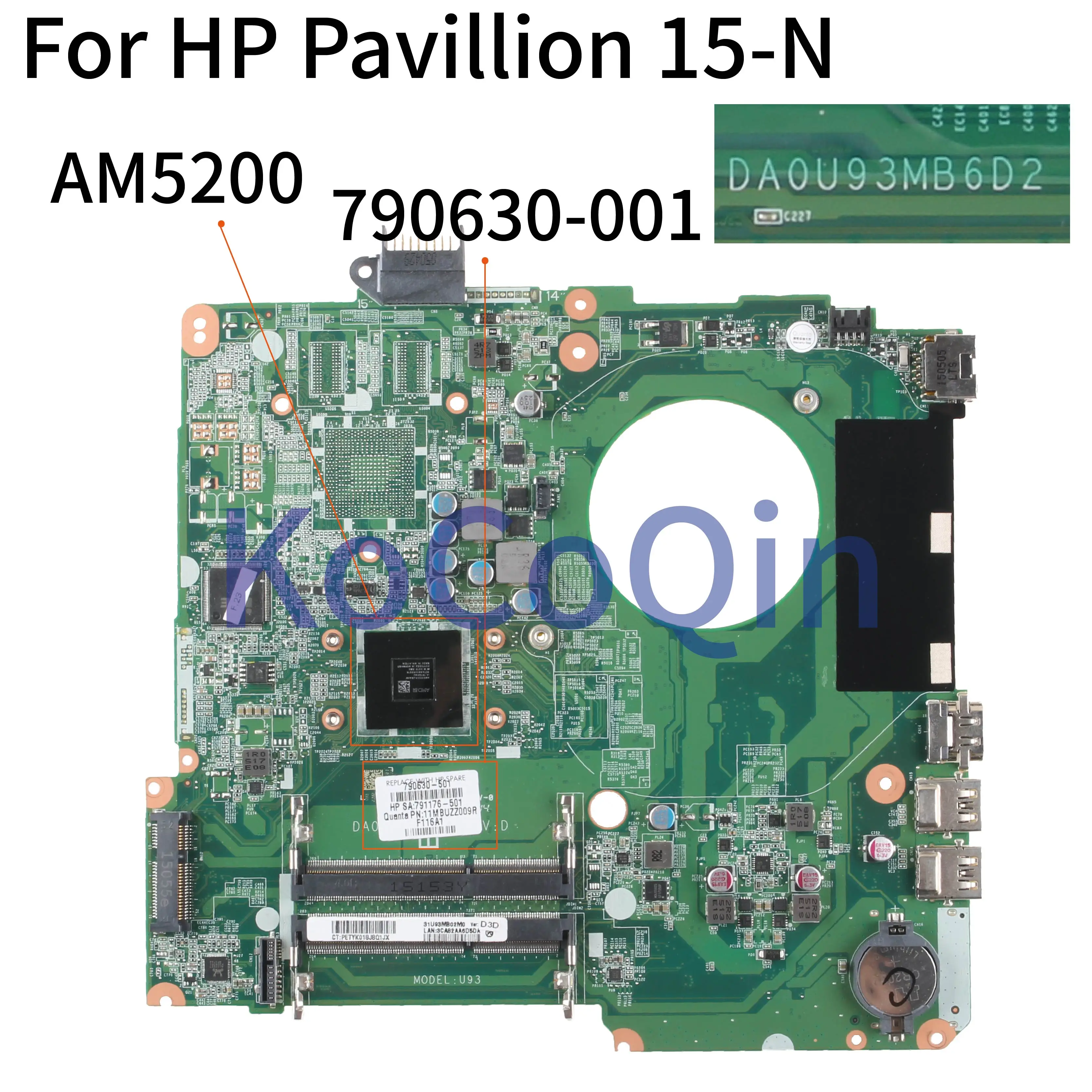 KoCoQin Laptop motherboard For HP Pavillion 15-N 15-F A6- AM5200 Mainboard DA0U93MB6D2 790630-001 790630-501 791176-501