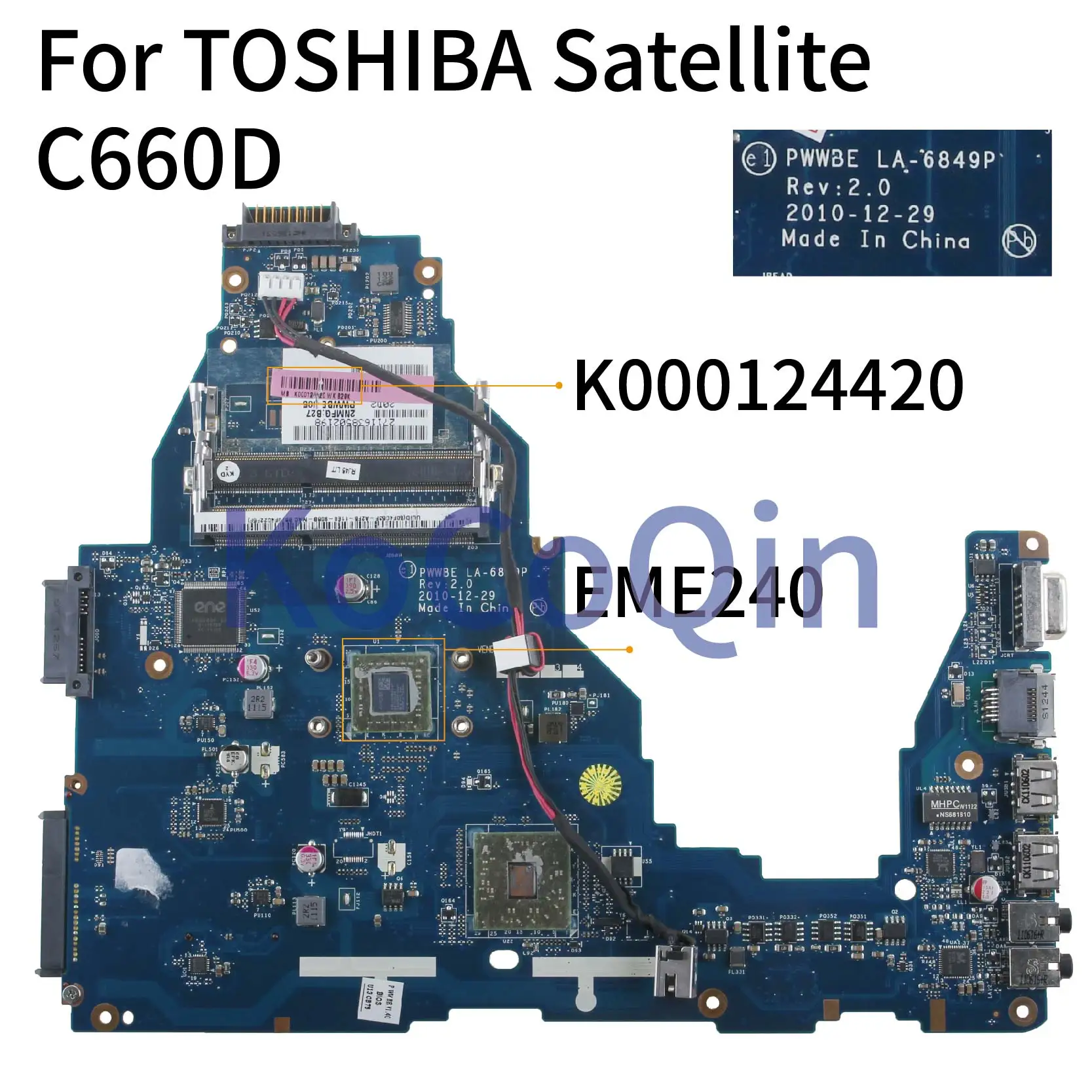 KoCoQin Laptop motherboard For TOSHIBA Satellite C660 C660D Mainboard PWW8E LA-6849P K000124420 EME240