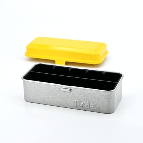 KODAK 120/135 - Custodia per 8 rotoli da 120 pellicole / 10 rotoli di pellicole da 35 mm, retro in acciaio per ordinare e proteggere la pellicola (parte superiore gialla/corpo argento)