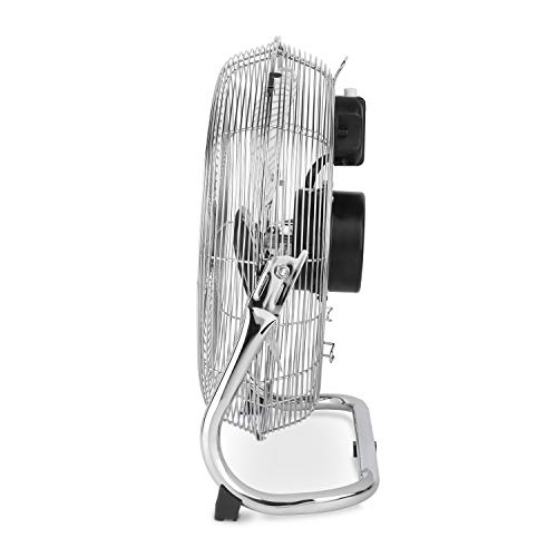 H.koenig JOE30 Ventilatore Da Terra,Silenzioso,Design in Metallo Cromato,40 cm,Resistente,3 Velocità,Testa Inclinabile,100W