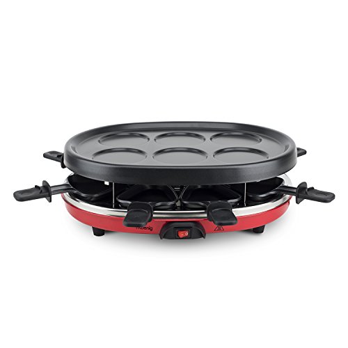 H.Koenig RP412 Raclette 4 in 1 per 8 Persone, Griglia, Raclette, Piastra in Granito