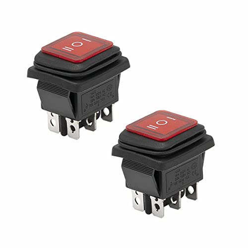 Kofelec Interruttore a bilanciere, interruttore ON-Off-ON, DPDT, 16A 250VAC, 6 pin 3 posizioni, con impermeabile, Rosso 2 pezzi