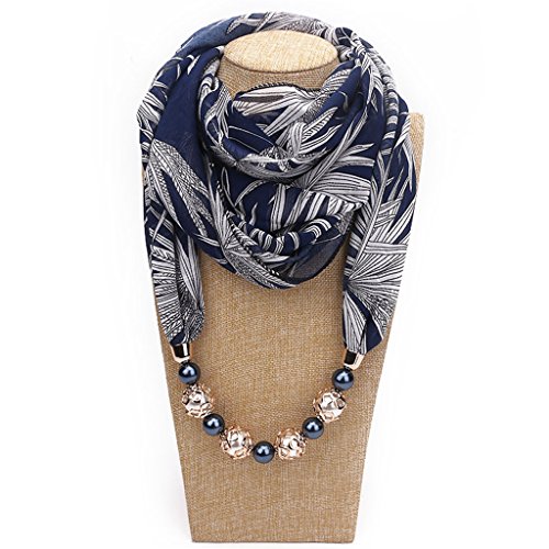 KOFUN Sciarpa delle Donne, Pendente della Collana dei monili del Pendente della Collana Chiffona della Sciarpa della Stampa Floreale delle Donne Hijab Molle Blu Navy + Bianco