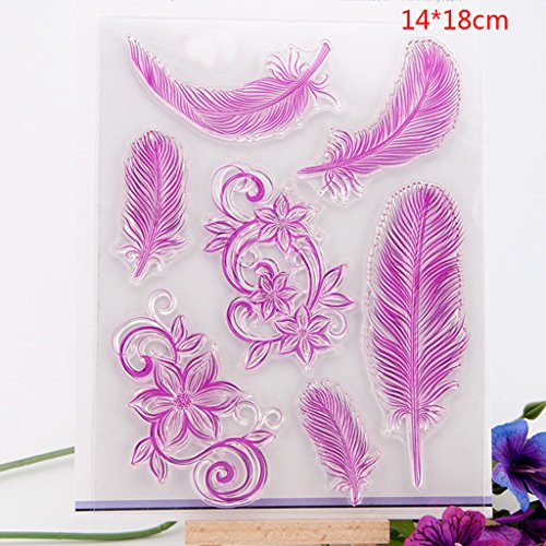 Kofun DIY Scrapbooking Francobolli Foil Carta regalo fai da te Artigianato per Scrapbooking Photo Album Decor fai da te Timbro in silicone + struttura in acciaio al carbonio Piuma trasparente