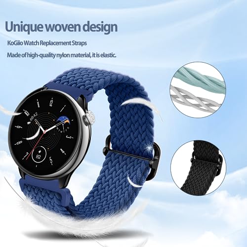 KoGiio 20mm Cinturino per Amazfit GTR Mini/GTS 4/GTS 4 Mini/Bip 3 Pro/Bip 3/Bip S/Bip Lite/Bip U Pro, 【2 Pezzi】Intrecciati Cinturini di Ricambio Elastico per Amazfit GTS 3/GTS 2e/GTS 2 Mini Nero & Blu