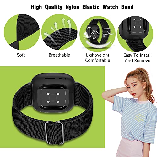 KoGiio Cinturino Compatibile con Fitbit Versa 3/Sense, Uomini Donne Nylon Tessuto Regolabile Sportiva Cinturino, Cinturini di Ricambio Elastico Traspirante per Fitbit Sense/Versa 3 - Nero