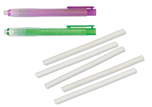 KOH-I-NOOR - Set di 2 gomme per cancellare in formato penna, 12,5 cm di lunghezza, con 5 gomme di ricambio incluse, colore: verde + lilla