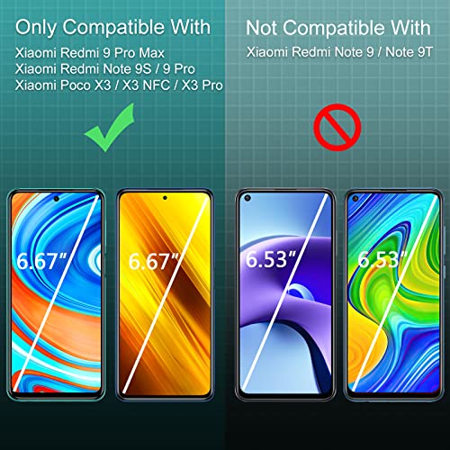 ❤ [Design compatibile]: realizzato su misura per Xiaomi Redmi Note 9S/ 9 Pro/ 9 Pro Max/Xiaomi Poco X3 NFC/ X3 Pro 6.67", contiene 3 * Proteggi schermo in vetro temperato, si adatta perfettamente al telefono e lo protegge da graffi e Danno.
