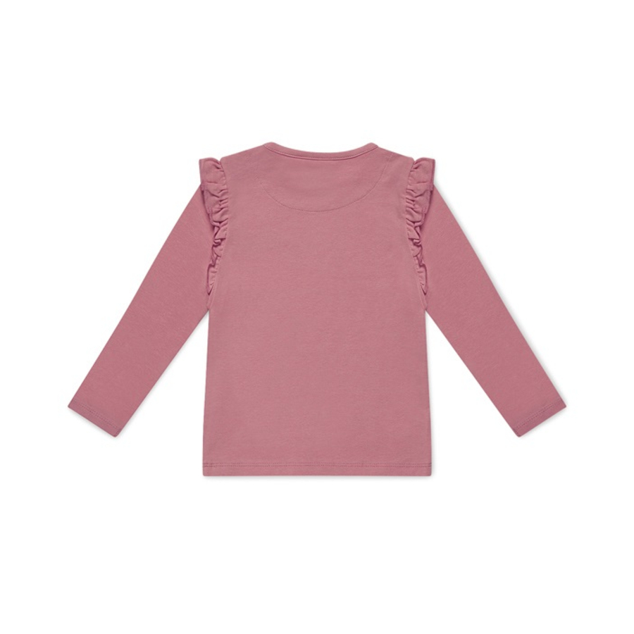 Dettagli del prodotto: Camicia a maniche lunghe Collo rotondo Dettagli con volant sulle spalle Perni a pressione Colore: rosa antico Materiale e cura: Materiale: 95% cotone biologico, 5% elastan. Lavabile a 30°C Non asciugare in asciugatrice Non candeggiare