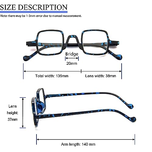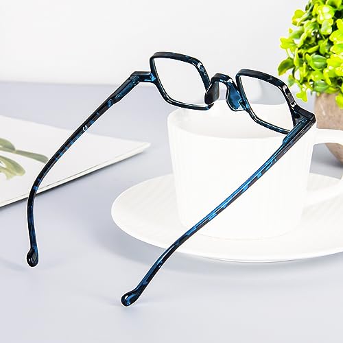 KoKoBin mini occhiali da lettura quadrati anti luce blu lettori per computer montature a molla a cerniera ultraleggere e confortevoli per uomini e donne (Blu, 3.00)
