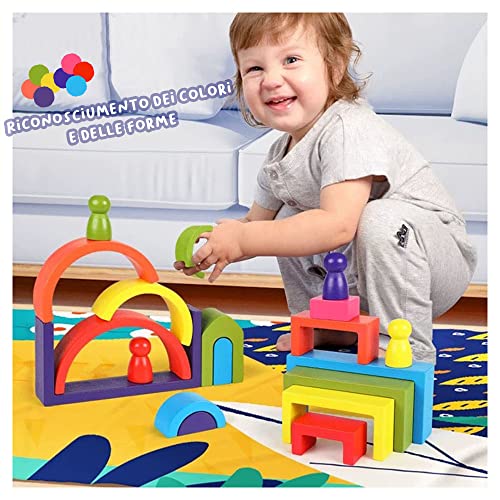 [GIOCATTOLI EDUCATIVI PER BAMBINI]: Lascia che tuo figlio impari colori e forme attraverso i giochi per sviluppare la coordinazione occhio-mano e il riconoscimento dei colori.Giocattolo arcobaleno legno Montessori aiuterà a stimolare l'immaginazione, promuovere la capacità di impilamento e bilanciamento, migliorare la capacità di risoluzione dei problemi,È un ottimo giocattolo educativo precoce che può essere utilizzato nelle scuole e fa un regalo per bambini.