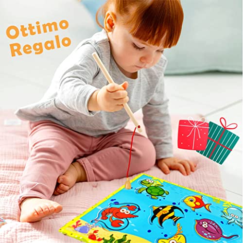 KOKOBOX Puzzle Bambini 2 3 4 Anni Puzzle In Legno Pesca Magnetica Gioco Pesca Bambini Pesca Pesciolini Gioco Magnetico Gioco Pesca Pesci Calamita Giocattoli Bambini Regalo Regalo Bambina Bambino
