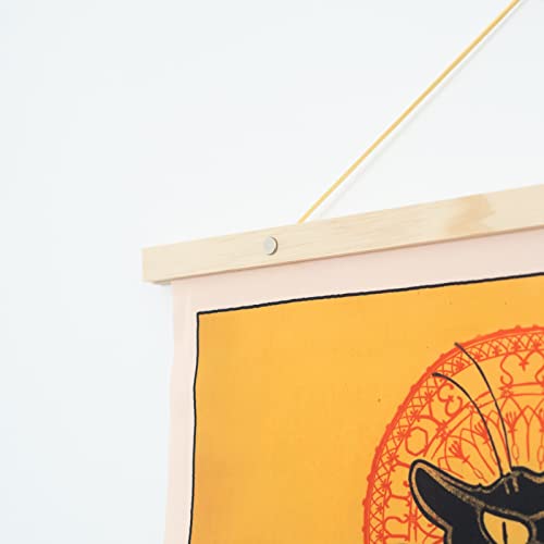 realizzato in tessuto dal tocco setoso e con le due estremità - superiore e inferiore - rifinite in legno, è dotato di una corda per appenderlo facilmente;