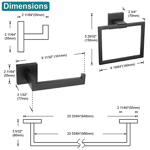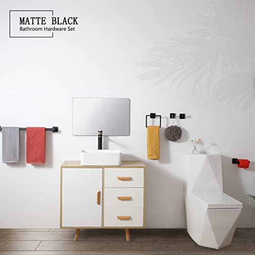 KOKOSIRI Set di accessori per l'hardware del bagno,Porta asciugamani da 24 pollici,Porta carta igienica,Porta asciugamani,Appendiabiti x 2,Acciaio inossidabile,Montaggio a parete,Nero opaco,B09A5-BK